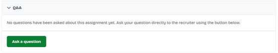 The Q&A section on the assignment details page allows you to communicate directly with the recruiter about a specific assignment. You can use this feature to ask for clarification or additional information related to the assignment.