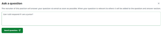 When you submit a question, it is sent to the recruiter, who will respond to you by email.