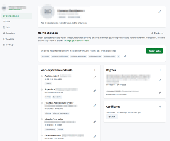 When you first start using Striive, one of your initial tasks is setting up your profile. The Competences page is designed to make this process simple and efficient.