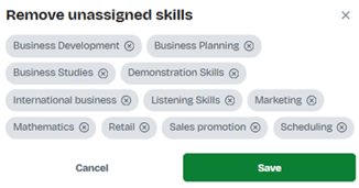 - In the Competences section, click next to unassigned skills. The Remove unassigned skills dialog box opens.