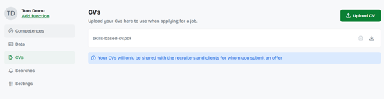 Striive allows you to manage multiple CVs, customized for different roles or industries. These CVs can be used as attachments when submitting bids.