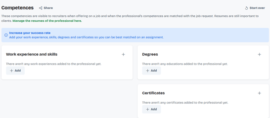 This option is available only if the Competences page has not been automatically populated from a CV.